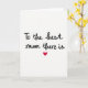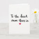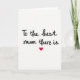 This card features a simple white background with a light paper-like texture that keeps all attention on the message. Centered near the top, the phrase “To the best mum there is” appears in flowing black lettering, giving it the feel of a close note shared between loved ones ❤️. The letters are slightly varied in thickness, like a pen moving gently across the page, which adds a soft, affectionate tone. The text sits with plenty of open space around it, making the words easy to read and visually calm. Directly below the wording, a single red heart is placed in the middle, acting like a quiet pause that hints at a warm hug. The strong contrast between the black text and the red heart creates a tender, romantic touch without needing extra decoration 🌼. The heart is a rich crimson red with smooth edges, centered beneath the message on the bright white field.