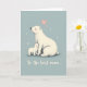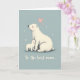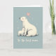 This card shows two stylized bear figures in the center on a cool blue‑green background, with a larger creamy white adult sitting calmly and a smaller cub tucked close at its side 👩. The adult’s head tilts upward while the cub looks up with rosy cheeks, and their gentle eye line suggests trust and closeness ❤️. Soft, diffused shading gives both figures a plush look that stands out against the smooth, airy backdrop. Above them, several floating pink hearts in different sizes drift like a quiet shower of affection. Small white sparkles, including tiny star and cross shapes, are scattered around the hearts to add a light, dreamy touch. Along the bottom edge, the message “To the best mum” is set in a flowing, dark text style that’s easy to spot against the pale background. The adult bear’s rounded ears and the cub’s small paws are outlined with subtle gray shading, and the pink hearts hover near the top center.