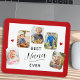 This grandparent desk mat provides space for 5 photos, allowing you to showcase favorite pictures of your grandchildren. The design features a modern style calligraphy that reads: “Best Nana Ever” and is accented with a dark red border. This desk mat is a perfect gift for any grandmother.