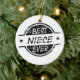 Lightweight, smooth, pure white ornament with nice sheen. Perfect size to be seen from across the room ... and to attract closer inspection! Price was great for ordering enough for the whole family! Clear, bold black design just as requested. Matches the order exactly. Just so nice!