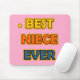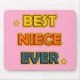 Muismat met de tekst: Beste nichtje ooit! Leuk als cadeau voor de beste nicht van de wereld. Kleuren: geel, oranje en blauw. Met een gele ster in de kleur geel.