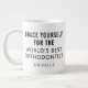 A mug does it every time if you're unsure of what gift to get for your best ever orthodontist because who doesn't love a hot cup of chocolate or coffee after a hard day's work. The text says "Brace Yourself for the World's Best Orthodontist"