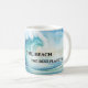 Mug featuring a watercolor painting of a big wave on the beach. Beautiful for a beach house or anyone who loves the beach or surfing.
