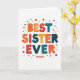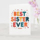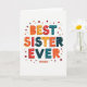 This card shows the words “BEST SISTER EVER” spread across three lines on a white background. The letters are big and chunky with a 3D look, filled with warm oranges, reds, yellows, and deep teal. Each letter has little polka dots in contrasting colors, and there are small dot shapes scattered around like confetti. It feels like a fun, happy shout-out that still comes from the heart, especially for a sister you truly care about 🥰. Under the main phrase, the smaller word “VAGUELY” appears in simple sans-serif lettering, placed beneath the big text. That tiny add-on adds a gentle joke, like you’re being sweet while also sharing an inside laugh ❤️. It’s a meaningful card to give because it mixes affection with humor in a way that feels honest and close. Hope it helps you share Valentine’s Day sentiments with someone you love.