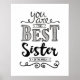 Hand-drawn typography emblem design with accents and flourishes (in black), which states, "You are the Best sister in the world." Great gift to remind your sister how special she is to you!