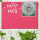 Cute, girly illustration with hair, eyelashes, and little stars and two photo templates. Click personalize to change the pictures to your sister's (square photos works best), or buy it as is.