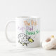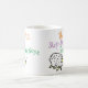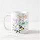 Mug for the best Step Dad. Funny cartoon of a sheep on the top of a hill. The sheep says "Best Step Dad Baaa None". Design repeats on both sides
