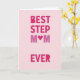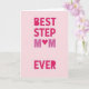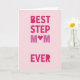 This card features the words “BEST STEP M❤️M EVER” stacked from top to bottom on a light pastel pink background. The letters are all uppercase in a simple sans‑serif style, and most of the text is a bright fuchsia magenta that stands out clearly. In the word “MOM,” the “O” is replaced with a magenta heart, which becomes the sweetest focal point 🥰. The two “M” letters around the heart are a softer pink, giving the center line a gentle, caring look. With no characters or extra objects, the design keeps your attention on the message and the little heart detail. It feels meaningful because it says thank you and “you matter to me” in a direct, loving way ❤️.