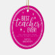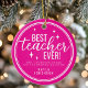 Best Teacher Ever Pink Script Retro Ceramic Ornament