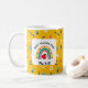 This mug is a delightful tribute to education and teachers. Its yellow background exudes warmth and positivity, while the playful arrangement of paperclips and school supplies, coupled with the teacher-inspired rainbow, captures the essence of learning, creativity, and inspiration. It's a fitting ornament for any educator or student, symbolizing the joy of knowledge and the important role teachers play in shaping young minds.