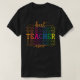This black t-shirt features the word "best" in a flowing orange script at the top. Below, the word "TEACHER" is repeated multiple times in a retro, slightly offset stacked design, with each repetition in a different vibrant color including orange, blue, green, and purple. At the bottom, "ever" is written in a similar flowing orange script. This design celebrates teachers with a fun, retro, and colorful style.