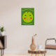 This poster features a bright green apple with a big wide smile and rosy red cheeks.