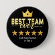 Show team pride in style with this bold black and gold “Best Team Ever” design featuring a crown and five shining stars. Personalize it by adding your team’s position, title, or custom text to create a unique button for employees, coworkers, coaches, or sports teams. Ideal for recognition events, award ceremonies, staff appreciation, or team celebrations, this design makes a memorable keepsake that highlights achievement and unity.
