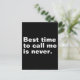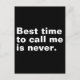 Grab this "Best time to call me is never" funny saying tee shirt to show your sense of humor by wearing this basic cool text style. for Black and White Contemporary Art Lovers. I'm sure that it can spark many conversations and will help with breaking the ice. This funny design is a great gift idea for introverted employees, colleagues, coworkers, managers, supervisors, friends, or family, and also makes a great birthday, holiday gift, or Christmas present. (YOU CAN CHANGE AND CUSTOMIZE THIS TEXT DESIGN OR ANY TEXT YOU WANT IN MY STORE!).
