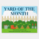 Custom neighborhood association sign to award of the Yard of the Month. Add your own association or club name under the award winner text above the pretty picket fence and gardening tools. A cute green landscaping sign for the winning neighbor in the HOA.