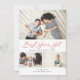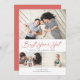 Featuring modern brush script in red with 3 of your photos. Comes with a photo on the back as well.