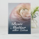 Die Nahaufnahme einer pinken Rose auf blauem Hinergrund und Muttertags- oder Geburstagsgrüßen. Die restliche Fläche der Karte ist frei gestaltbar.