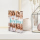 Celebrate friendship with your besties with this beautiful acrylic photo collage block featuring 4 favorite photos, with “besties” in the center in turquoise hand lettered brush script.
