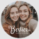 Round beach towel featuring your custom photo and the text "Besties" with custom names below.