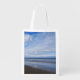 I own a lot of reusable grocery bags, but this one holds its box shape and simply stands up on its own even if there is nothing in it. Its stiffer than your regular reusable bag too, and the material is water resistant. I poured water on the exterior and it didn't penetrate inside to the other side. I'm buying a couple more. Wish I knew how durable these bags were or I would have purchased a few more with my initial order. I also like how it folds and buttons up when not in use, making it easy to put into a handbag or luggage. I haven't used this bag yet, as I purchased it for travel use, like when you're at the airport and need to small sturdy bag to place any airport purchases in, like food, souvenirs etc. I can tell you when you first see this bag, it looks very cheap, but after closer inspection of the material and the seams its a very sturdy reusable bag. I tested it out by putting some really heavy objects inside and I could not observe any stress to the bag at all. Another thing I like about it, is the fact the medium size that this is makes it easy to just carry it in your hand without the bottom of the bag scraping the ground, like most other bags do when you're short. That alone, deserves 5 stars. I just wish there were more colors to choose from! The PDX Airport Carpet printing looks just like the photo, and using this bag during travel might be a conversation piece when/if a native from Oregon happens to see it.