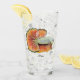A watercolor of a vibrant Orange-Red male Betta Splendens fish adorns this glass!