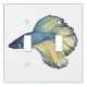 A watercolor of a lovely blue and gold male Betta Splendens fish adorns this light switch cover! Customize by changing the background color to suit yourself!