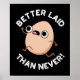 Better Laid Than Never Funny Running Egg Pun features a cute egg running late! Perfect pun gift for family and friends who love cute food egg puns.