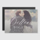 Modern minimalist elegant faux vellum wedding save the date postcard with your custom photo and chic trendy white "better together" overlay calligraphy script. +++++++++++ Easy to personalize with your details on both sides!