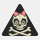 Big-eyed girl's skull and crossbones, Jolly Roger pirate flag emblem, with tattered pink, polka-dot bow.
