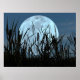 Cattails and a Dragonfly visitor, nearly silhouetted against a great big full moon. A composite of original photos created this summer evening idyll.