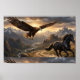 Though separated by distance, the eagle and horse move with the same sense of purpose—one carried by wind, the other guided by the path beneath its hooves. The scene captures a quiet harmony of motion and freedom, a reminder that the wild world holds many ways to travel through it.