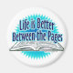 A cool fun life is better between the pages greatness lies within a book fun cool bookworm saying genre reader slogan book lover pride illustrated motto design I love reading totally bookish motto magnet that’s perfect people who love to read. Get an awesome reading hobby motto magnet today.