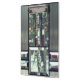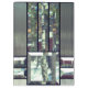 A modern, masculine design featuring birch trees seen through beveled glass on a metallic, silver pinstripe background. Elegant and masculine stained glass look. In colors of silver and black.
