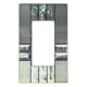 A modern, masculine design featuring birch trees seen through beveled glass on a metallic, silver pinstripe background. Elegant and masculine stained glass look. In colors of silver and black.