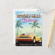 Beverly Hills holiday poster, 1980s Beverly Hills California travel or vacation print featuring a yellow american sports car.
