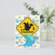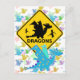 Beware of Dragons Warning Sign Blue Cartoon Dragon Postcard. Cool ice blue cartoon dragon with color stars, wings and big star tail and yellow black warning traffic sign with color dragons pattern postcard. This cool and cute cartoon dragon postcard is fully customizable, add your texts and images!