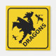 Beware of Dragons Warning Sign Fidge Magnet. International style road and highway yellow and black warning sign advising of dragon activity. This funny dragons road sign magnet is fully customizable, add your texts and images! A great dragon gift for the big little dragon fan!