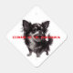 Attach this neat metal sign outside near your front door to warn visitors that a tiny land shark lives here. An adorably fluffy long-haired black and white chihuahua quickly turns into a fiercely toothy monster. Best not to cross these deceptively cute little dogs.