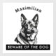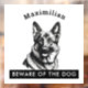Protect your home with this personalized 'Beware of the Dog' window notice. This high-contrast, black-and-white window cling features a detailed illustration of a German Shepherd dog. Designed specifically for the inside of windows facing out, this cling provides a clear "Beware of the Dog" warning while allowing you to personalise the top with your dog's own name in a classic, bold arched font. Ideal for front doors, side windows, or vehicle glass.