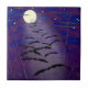The bewitching hour is nearing. Spooky fun with bats, a full moon, stars and tree silhouettes on this square ceramic tile!