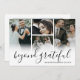 Elegant wedding thank you cards to send our to your wedding guests to show your appreciation of them helping you celebrate your wonderful day. Featuring 4 wedding photos on the front, the title "beyond grateful" in a elegant script font, on the back is a photo of you both on your honeymoon, and a personalized thank you note.
