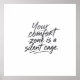 A striking black and white design with the quote, "Your comfort zone is a silent cage." This artwork is a perfect symbol of personal growth and breaking barriers. It's a visually appealing and meaningful piece for anyone on a journey of self-improvement.
