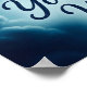 This whimsical poster features a mysterious witch in a flowing black dress and pointed hat stands against a glowing full moon, surrounded by stars and clouds, inspiring self-empowerment. Finished as a mixed media art print.