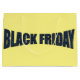 This Bold, mosaic graphic, with the familiar phrase, "Black Friday", is designed in a, wing pattern, with white dots, against black-displayed upon, a yellow, background.