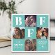 Modern friendship photo collage plaque featuring 4 photos of you and your bestie, a teal and white background that can be changed to any color, the letters "BFF", the words "best friends forever", a true friends quote, and your names.