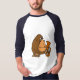 I bought the Men's Basic 3/4 Sleeve Raglan T-Shirt, White/Navy. It arrived on time for a gift and is of a great quality and fits perfectly! So cute! Zazzle has done it again! The printing was clear and filled in solidly.