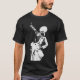 My 11 yo wore adult XL (5’7” 165#). The 8yo is small framed. She wore adult small and tied it in the back. Grandma wore adult large with long sleeve shirt underneath. Tall girl adult medium. Dark haired male adult large. Good quality dark Heather gray, Gildan brand shirt. -it was next up from basic choice and cost about $20 per shirt. Not too thick or thin. Washed and dried well, no major shrinkage. Not see-through. Can wear a bra under it fine. Screen print is just as shown and well done, front and back.