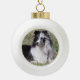 Bi Blue Merle Sheltie with Split Face Ceramic Ball Christmas Ornament