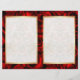 Rrofusion of deep red roses with white and gold overlay panels on front and back ready for customization. Elegant Bi-Fold Red Rose Wedding Program.