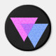 This version of the 'biangles' symbol for bisexuality and bisexual pride assembles 28 smaller triangle knots into the familiar overlapping blue, purple, and pink triangles. Be seen! Be bi and proud!